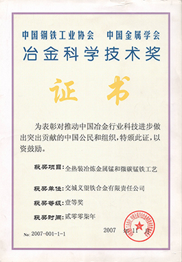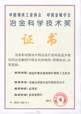 公司以學習、研究、創(chuàng)新為企業(yè)發(fā)展理念,不斷追求技術(shù)進步,擁有專利49項,公司核心技術(shù)“全熱裝冶煉金屬錳及微碳錳鐵新工藝”獲冶金科學技術(shù)獎一等獎,礦棉核心工藝“液態(tài)廢渣制取礦棉新工藝”獲冶金科學技術(shù)獎二等獎。2012年公司通過山西省高新技術(shù)企業(yè)認定,《富錳渣電爐冶煉工藝》等三個創(chuàng)新項目獲山西省科學技術(shù)獎;公司始終關(guān)注行業(yè)技術(shù)進步,積極參與行業(yè)標準的制修訂,多年來參與了《金屬錳》、《微碳錳鐵》、《錳氮合金》等多個國家、行業(yè)標準的制修訂工作,公司2013年主持修訂了《錳鐵》國家標準并獲準頒布。