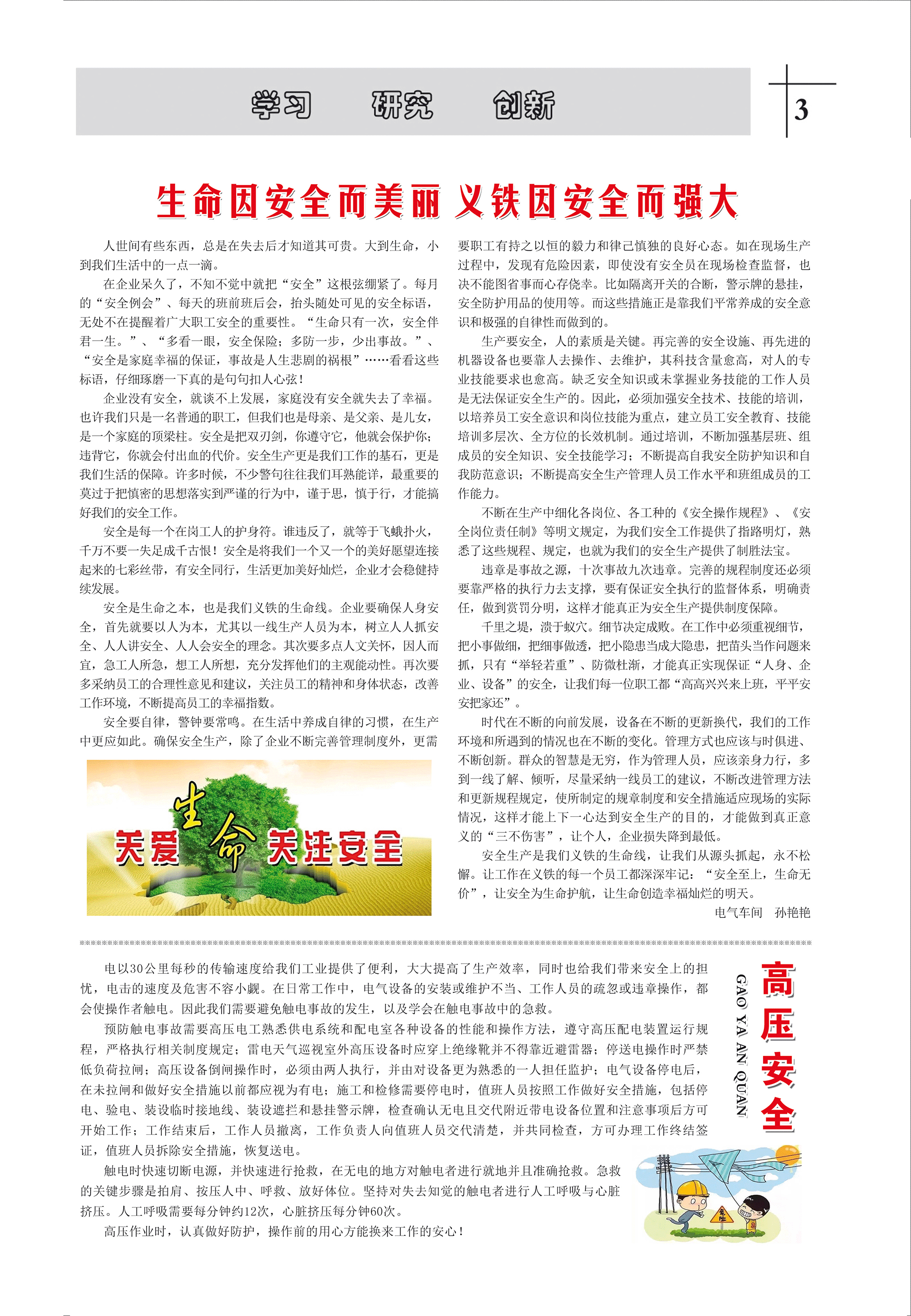 安全是一種關(guān)愛(ài)和警告,更是一種對(duì)生命的敬畏。防患于未然是每個(gè)人必須想到且必須做到的。