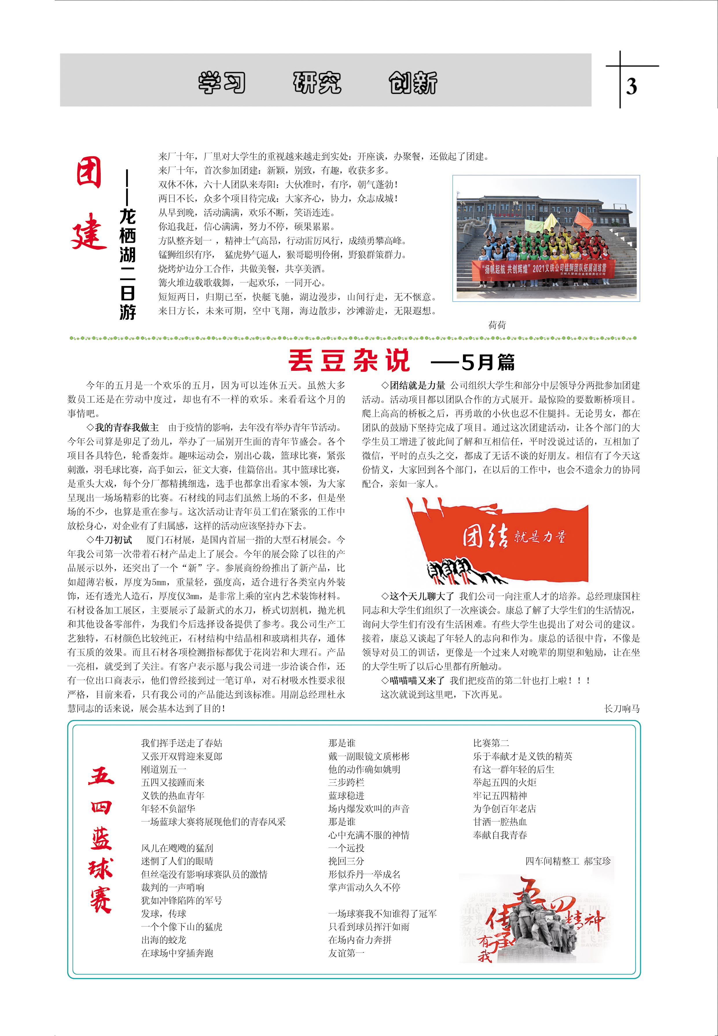 來廠十年,廠里對大學(xué)生的重視越來越走到實處:開座談,辦聚餐,還做起了團(tuán)建。 來廠十年,首次參加團(tuán)建:新穎,別致,有趣,收獲多多。 雙休不休,六十人團(tuán)隊來壽陽:大伙準(zhǔn)時,有序,朝氣蓬勃!