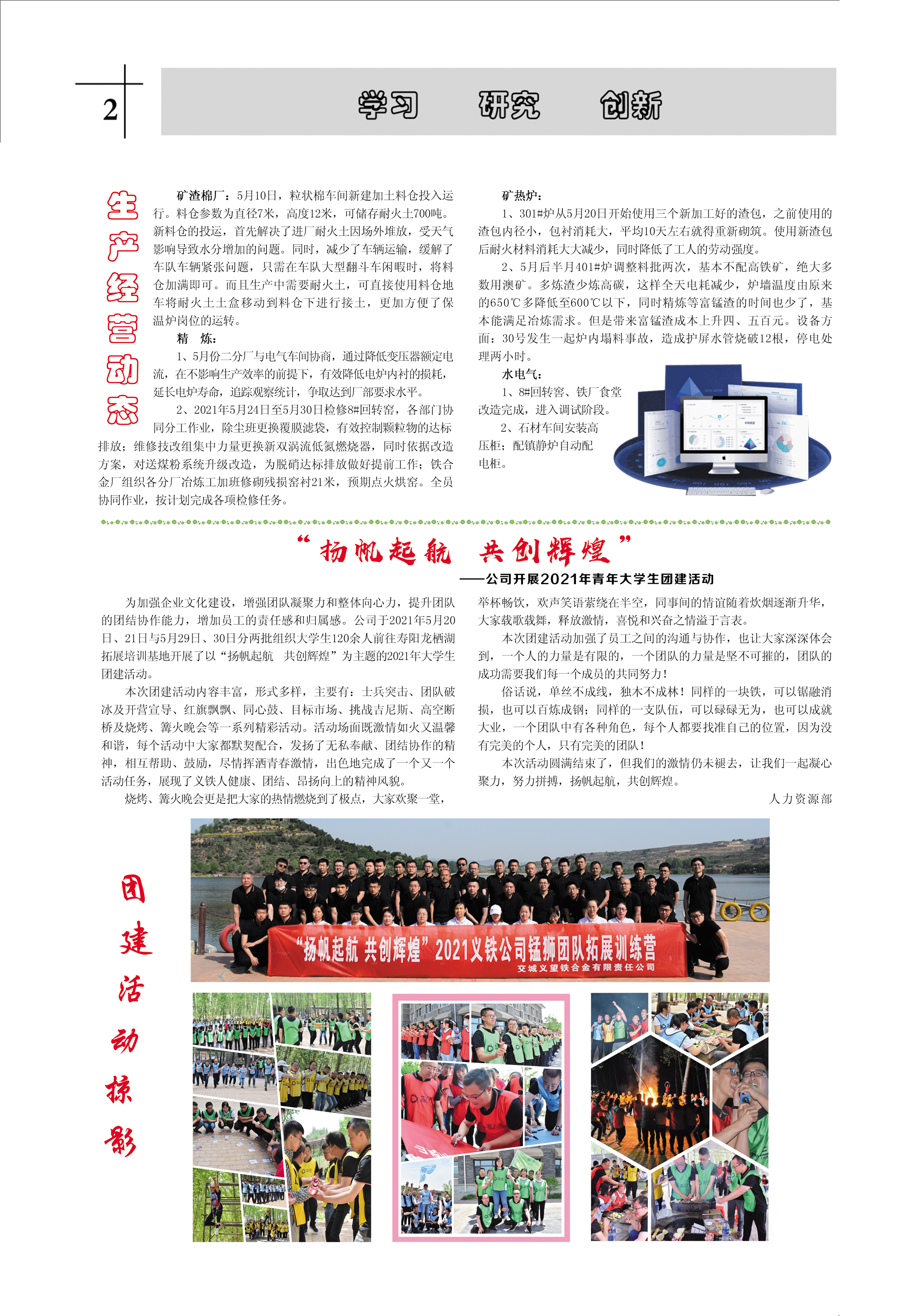 為加強(qiáng)企業(yè)文化建設(shè),增強(qiáng)團(tuán)隊凝聚力和整體向心力,提升團(tuán)隊的團(tuán)結(jié)協(xié)作能力,增加員工的責(zé)任感和歸屬感。公司于2021年5月20日、21日與5月29日、30日分兩批組織大學(xué)生120余人前往壽陽龍棲湖拓展培訓(xùn)基地開展了以“揚(yáng)帆起航 共創(chuàng)輝煌”為主題的2021年大學(xué)生團(tuán)建活動。
